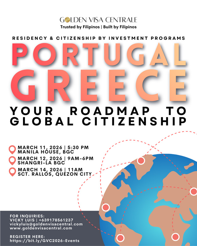 Those who are interested in attending may register at https://bit.ly/GVC2026-Events. For questions and more information, please contact Vicky Luis at vickyluis@goldenvisacentral.com or +63 917 856 1237.